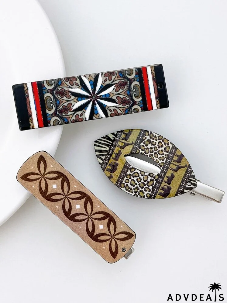 3pcs Geometric Print Hair Clip