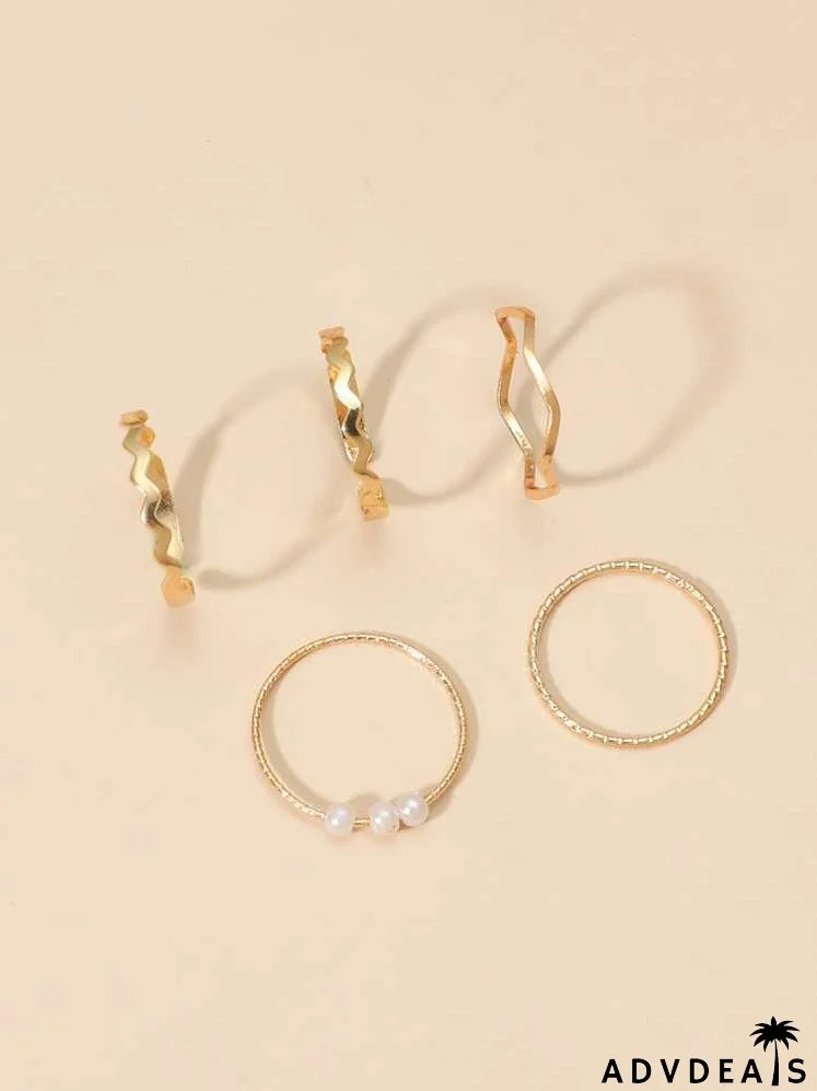 5pcs Faux Pearl Decor Ring