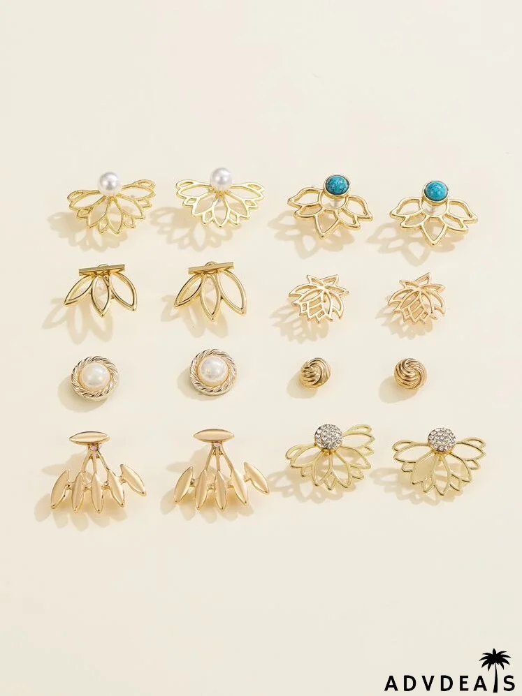 8pairs Lotus Shaped Stud Earrings