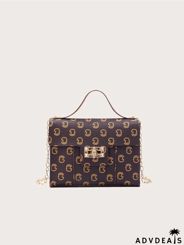 Allover Graphic Turn-lock Satchel Bag