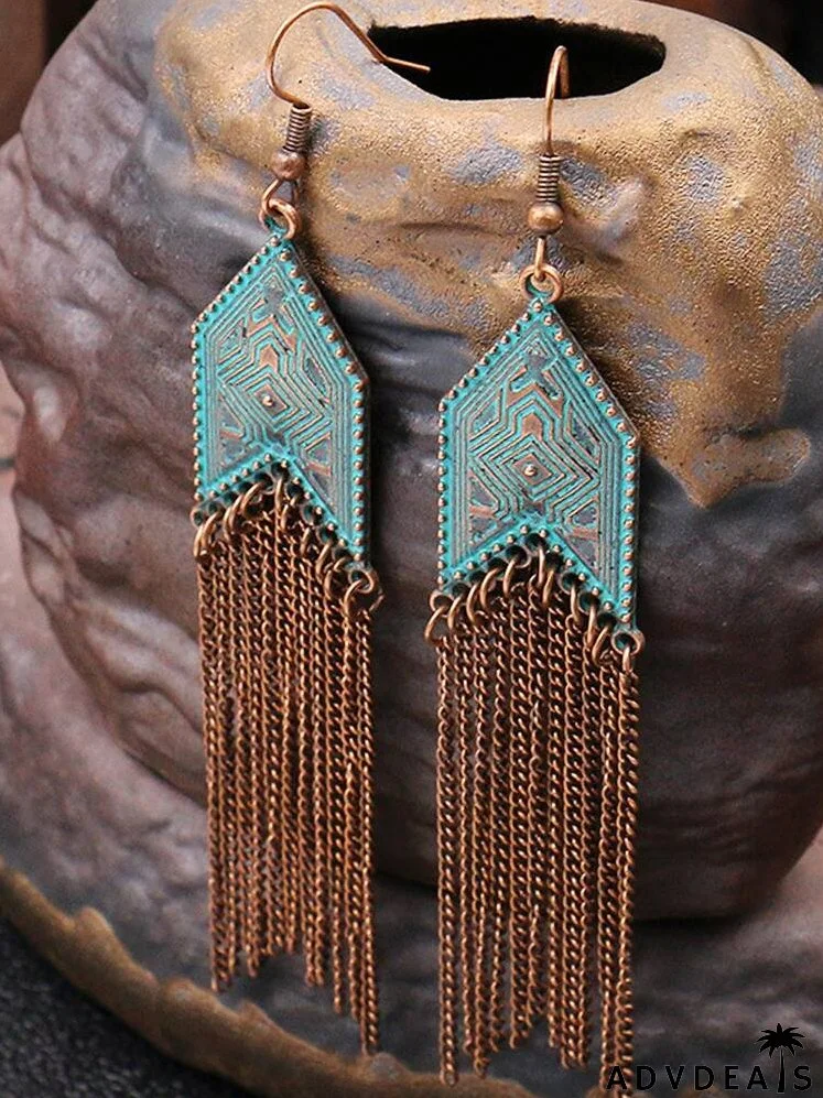 Bohemian Geo Decor Tassel Drop Earrings