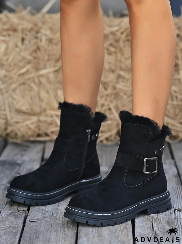 Buckle Decor Faux Suede Zip Side Snow Boots