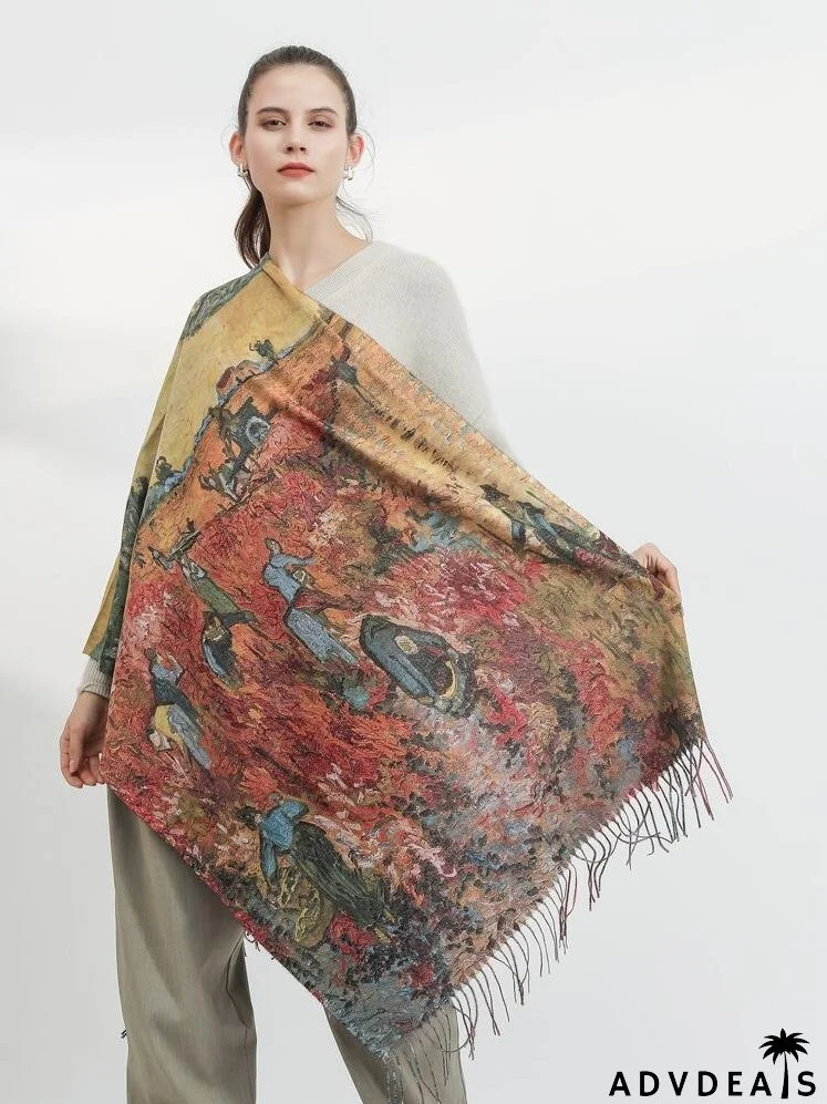 Color Block Fringe Hem Scarf