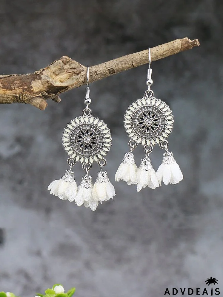 Fabric Flower Charm Drop Earrings