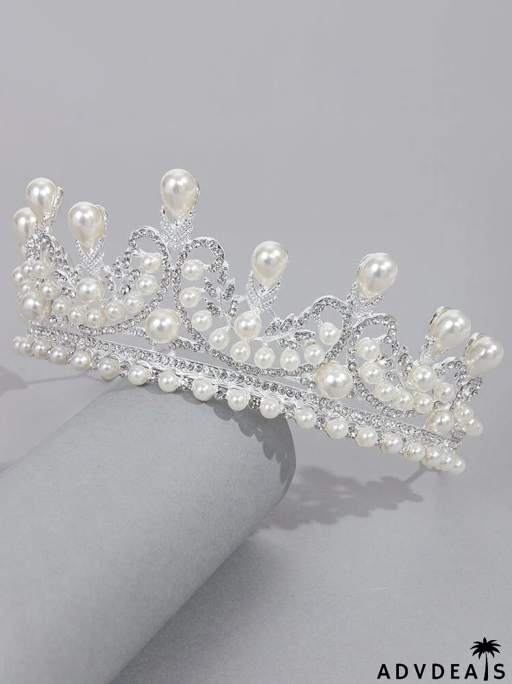 Faux Pearl Decor Crown Design Headband