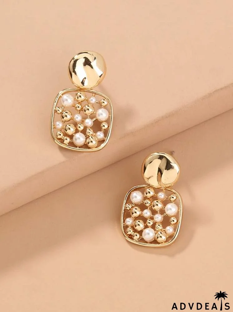 Faux Pearl Decor Hollow Out Square Drop Earrings