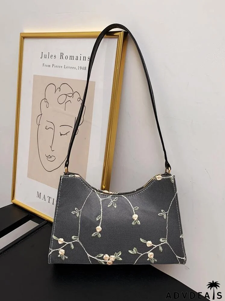 Floral Embroidered Shoulder Bag