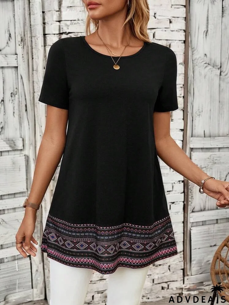 Geo Print Round Neck Tee For Summer