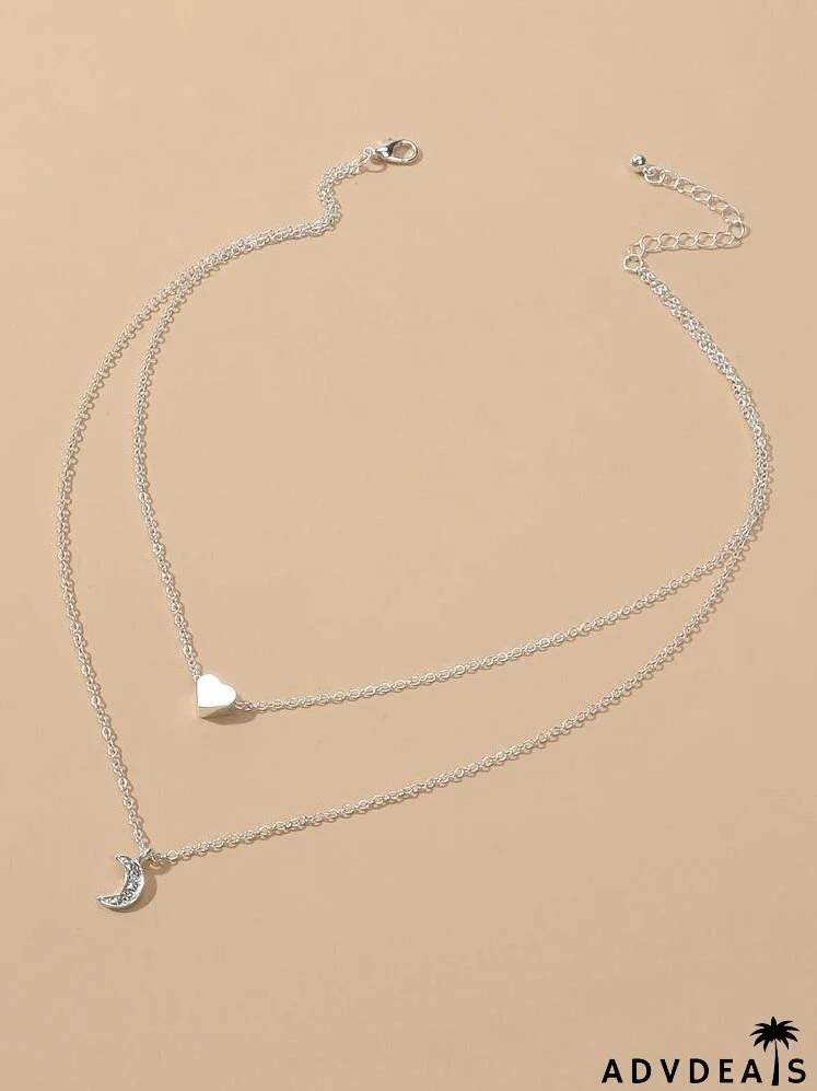 Heart & Moon Pendant Layered Necklace